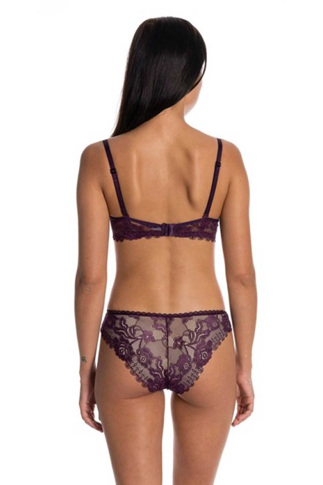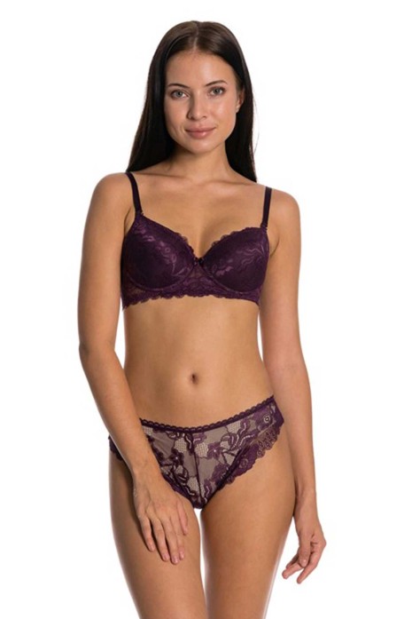 Dolgusuz Full Dantelli Sütyen Takımı Mürdüm