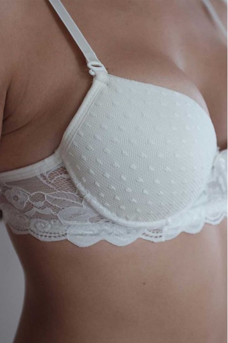 Dolgulu Silikonlu Tül Dantelli Sütyen Ekru