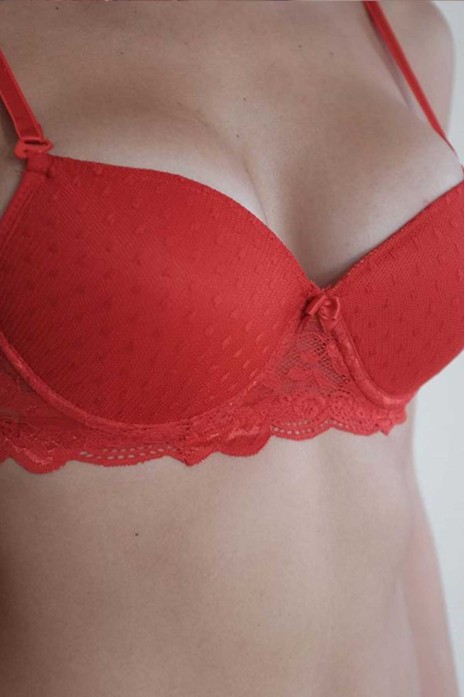 Dolgulu Silikonlu Tül Dantelli Sütyen Kırmızı