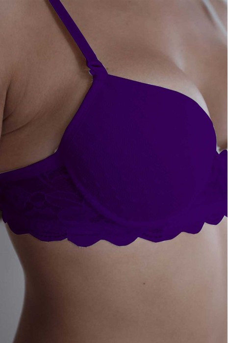 Dolgulu Silikonlu Tül Dantelli Sütyen Mürdüm