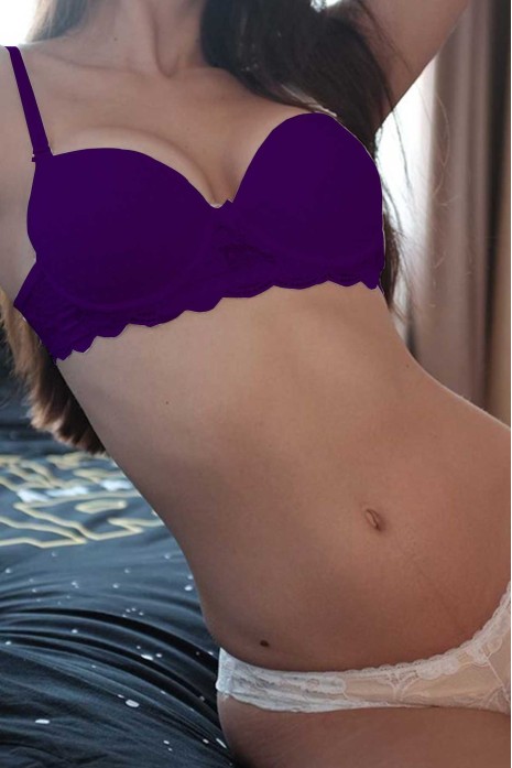 Dolgusuz Silikonlu Tül Dantelli Sütyen Mürdüm