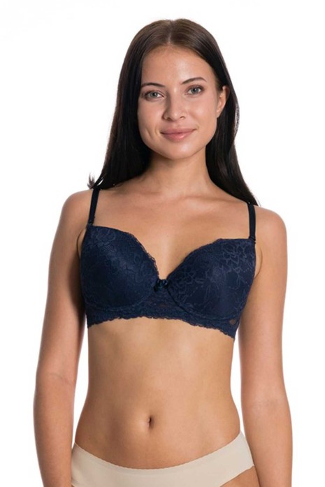 Dolgulu Full Dantelli Sütyen Lacivert