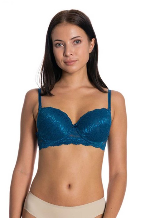 Dolgulu Silikonlu Tül Dantelli Sütyen Ekru