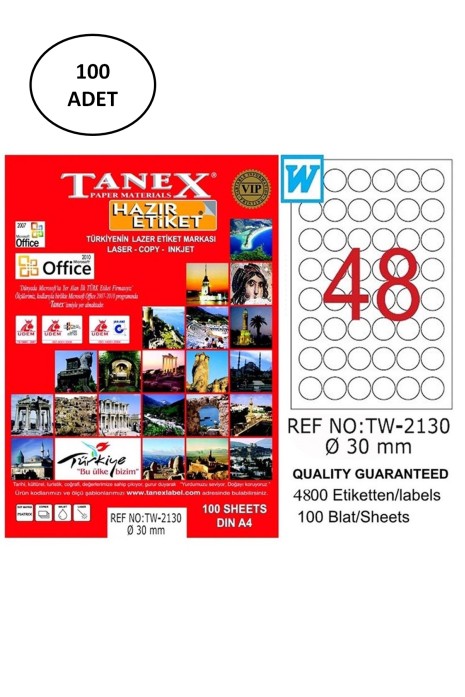 Tanex Tw-2130 Lazer Etiket Yuvarlak 30 Mm 100 Lü