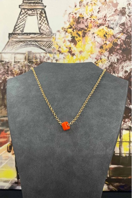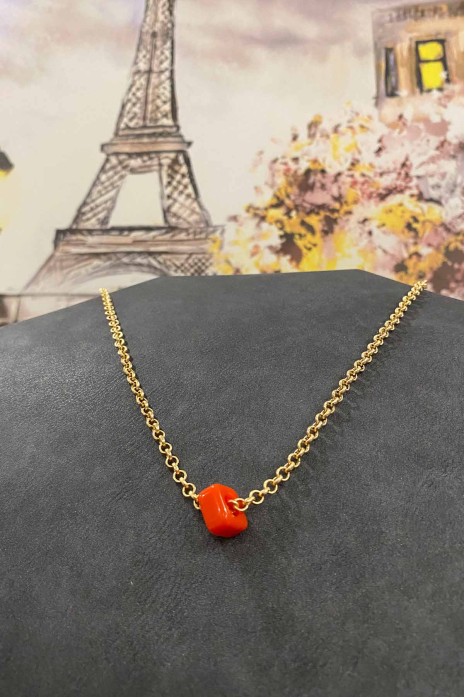 Kırmızı Geçmeli Kolye Uçlu Kalın Zincir Kolye 40 cm