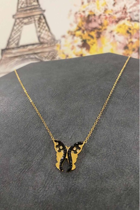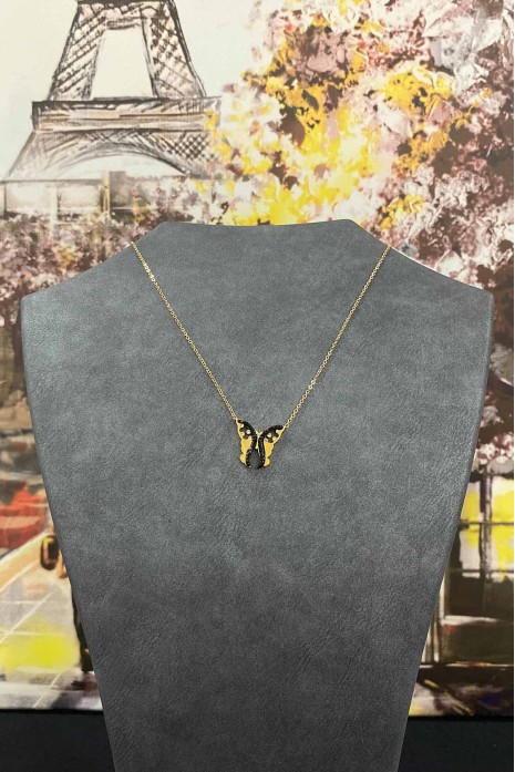 Altın Kaplama Çift Renk Kelebek Tasarım İnce Zincir Kolye 40 cm