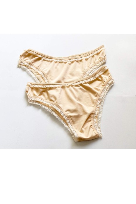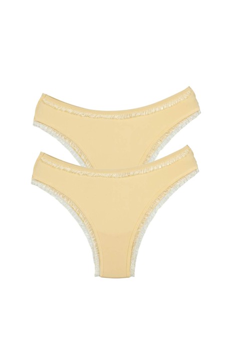 2 Adet Kadın Mikro Bikini Külot İnce Lastik FırFır Kenarlı Yumuşak Doku İç Giyim Ten