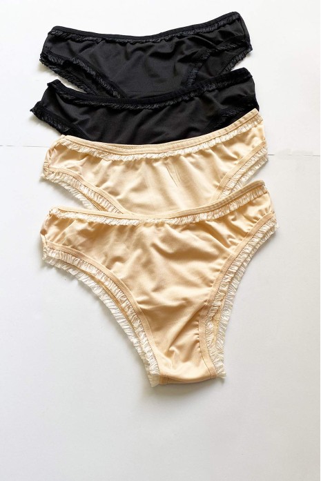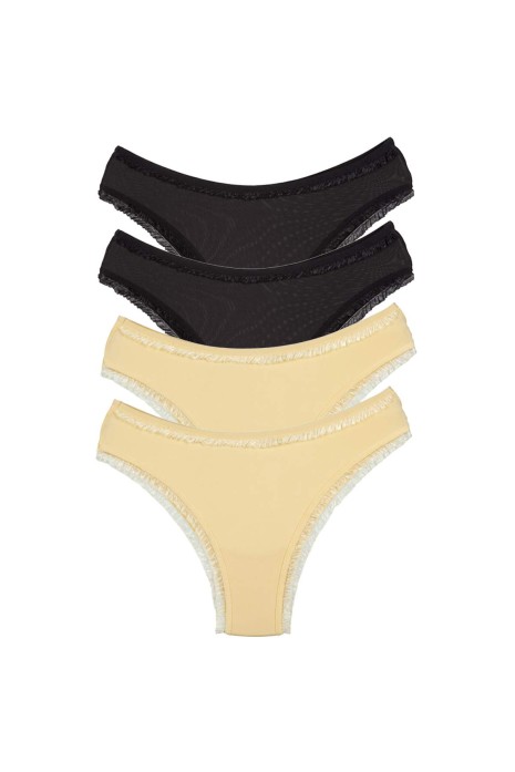 4 Adet Kadın Mikro Bikini Külot İnce Lastik FırFır Kenarlı Yumuşak Doku İç Giyim Siyah Ten