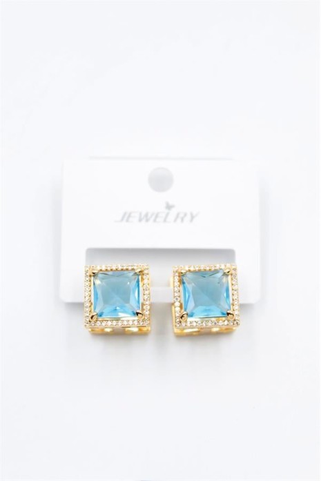 Kare Taşlı Küpe - Turkuaz
