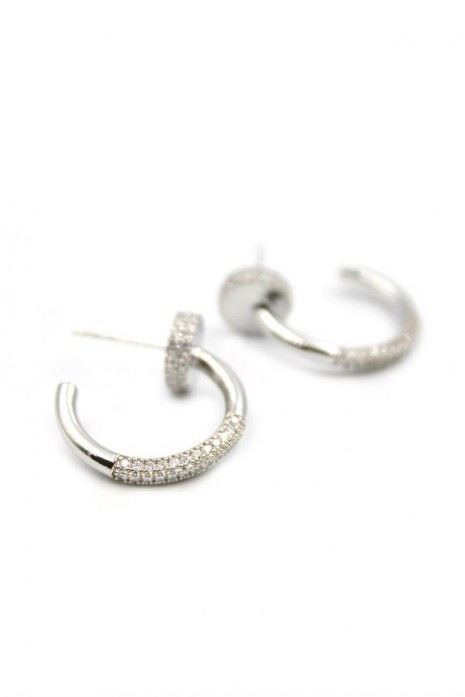 Taşlı Halka Küpe - Gümüş