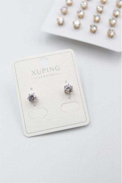 Orta Boy Zirkon Taşlı Tektaş Küpe - Altın