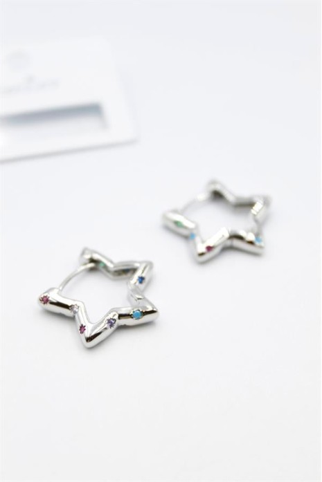 Taşlı Yıldız Küpe - Gümüş