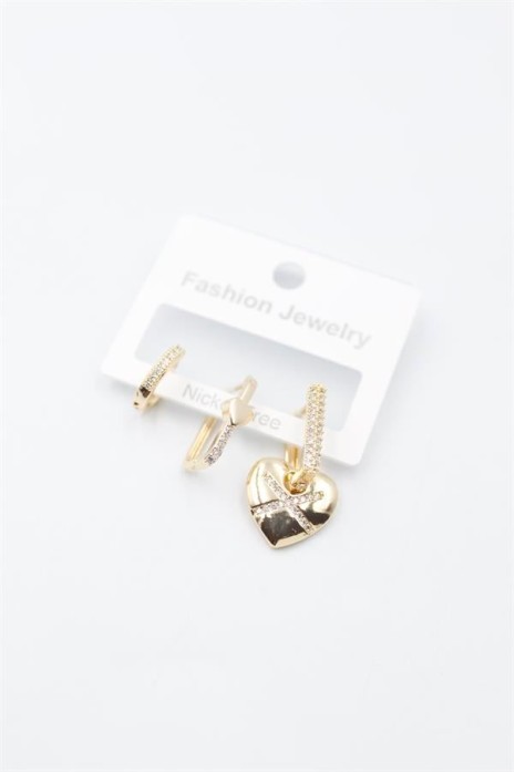 3'lü Kalp Küpe - Altın