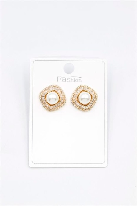 İncili Baget Taşlı Küpe - Altın