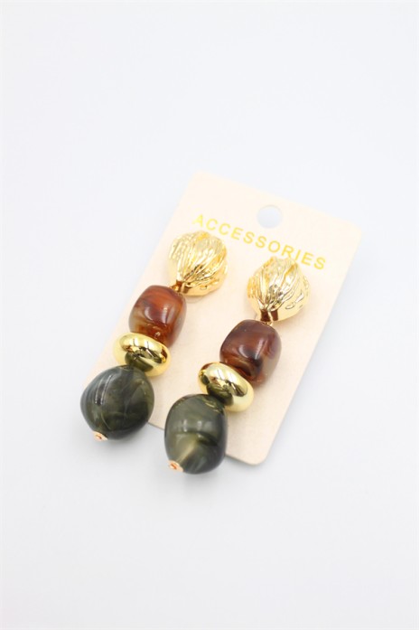 Boncuklu Küpe - Kahverengi