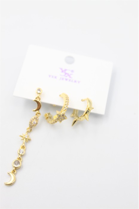3'lü Ay Yıldız Küpe - Altın