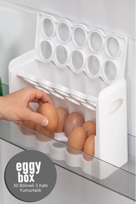 30 Bölmeli Yumurta Kutusu Organizer Yumurtalık 27x17x10 Açılıp Kapanır Yumurta Rafı 3 Katlı Royaleks-BNM-4016