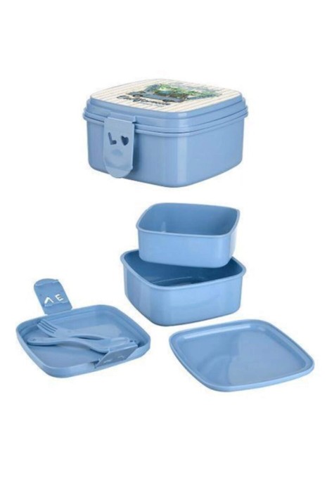 Desenli Beslenme Çantası 2 Katlı Çatal Kaşıklı Beslenme Kabı