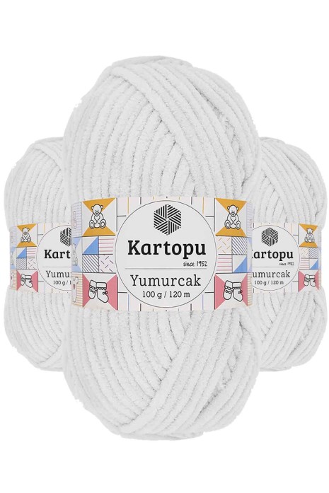 3 Adet Yumurcak Kadife El Örgü İpi Kar Beyaz K010
