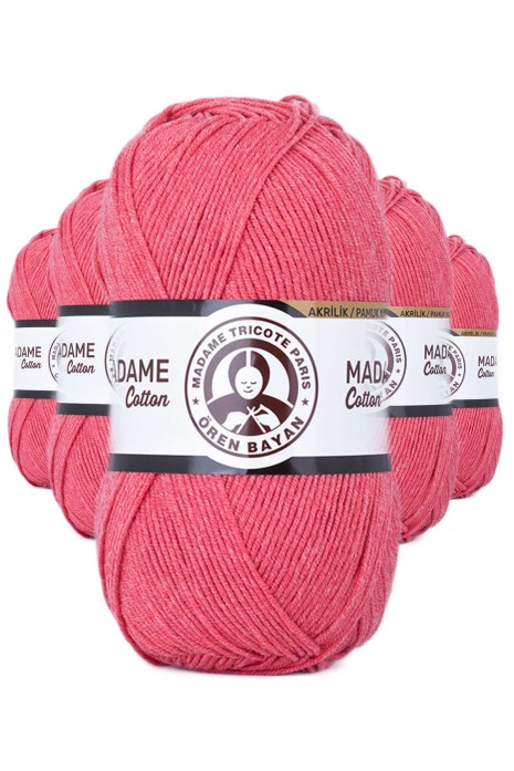 5 Adet Madame Cotton El Örgü İpi Yünü 100 gr 043 Koyu Pembe