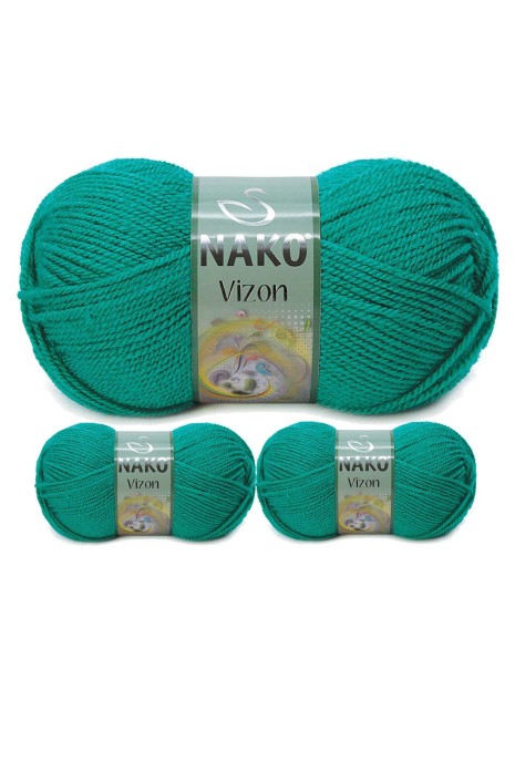 3 Adet Vizon Premium Akrilik El Örgü İpi Yünü Renk No:181 Ördek Başı Yeşil