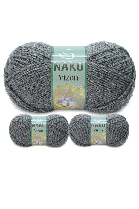 3 Adet Vizon Premium Akrilik El Örgü İpi Yünü Renk No:193 Loş Gri