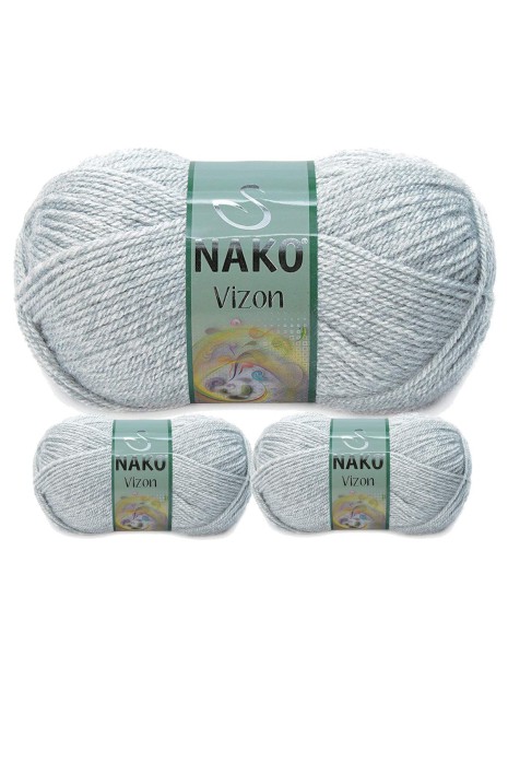3 Adet Vizon Premium Akrilik El Örgü İpi Yünü Renk No:195 Açık Gri Melanj