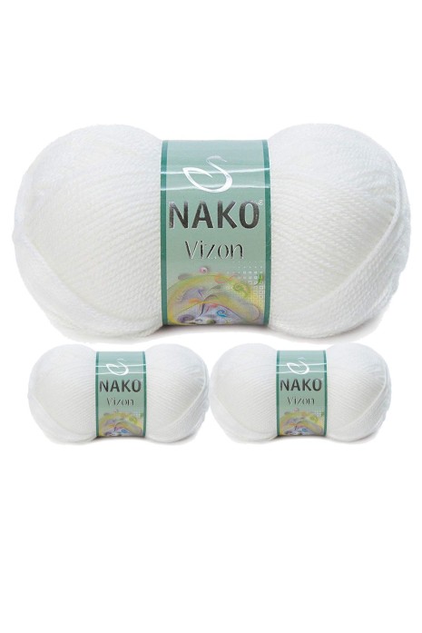 3 Adet Vizon Premium Akrilik El Örgü İpi Yünü Renk No:208 Beyaz