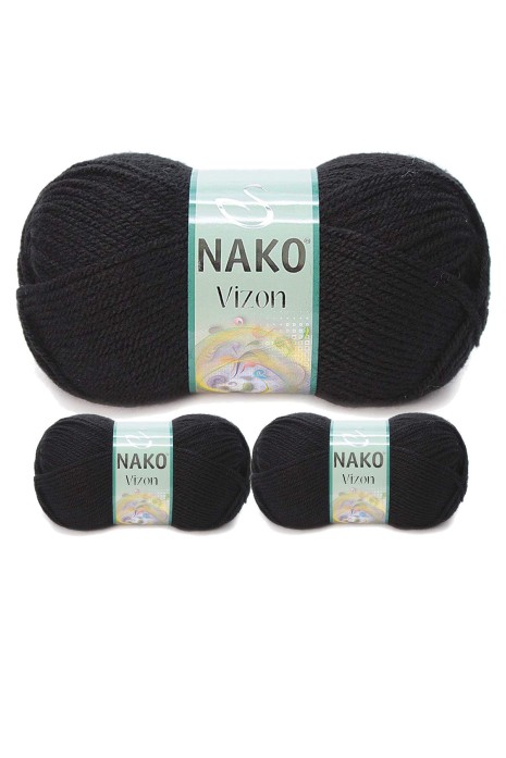 3 Adet Vizon Premium Akrilik El Örgü İpi Yünü Renk No:217 Siyah