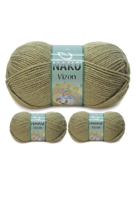 3 Adet Vizon Premium Akrilik El Örgü İpi Yünü Renk No:268 Asker Yeşil