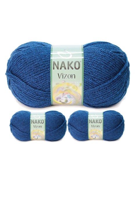 3 Adet Vizon Premium Akrilik El Örgü İpi Yünü Renk No:517 Orta Mavi