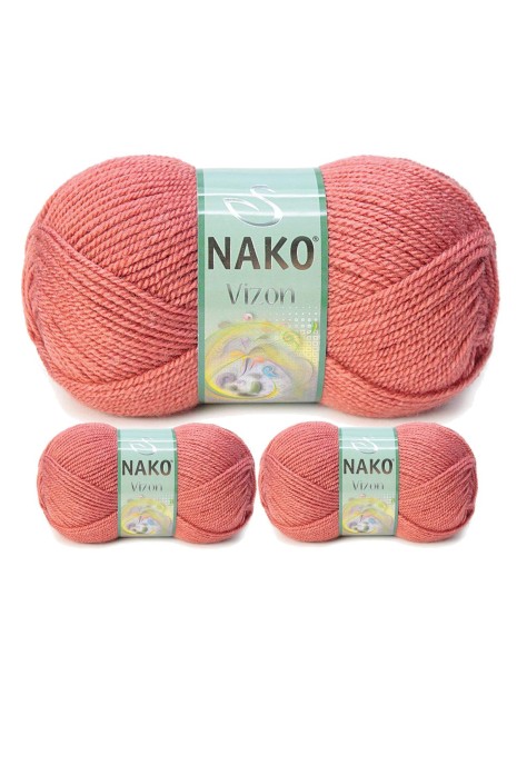3 Adet Vizon Premium Akrilik El Örgü İpi Yünü Renk No:2574 Gül Kurusu