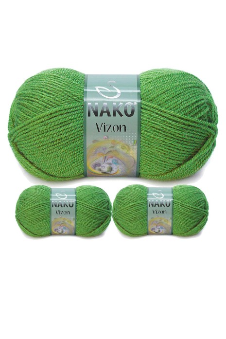 3 Adet Vizon Premium Akrilik El Örgü İpi Yünü Renk No:6574 Çimen Yeşili