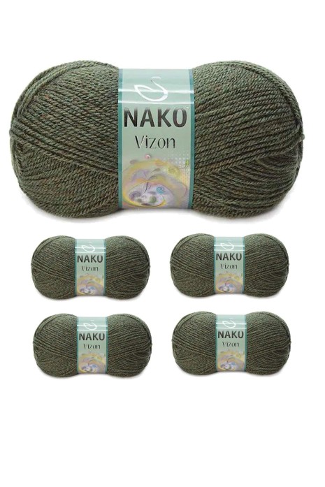 5 Adet Vizon Premium Akrilik El Örgü İpi Yünü Renk No:23520 Melanj Haki