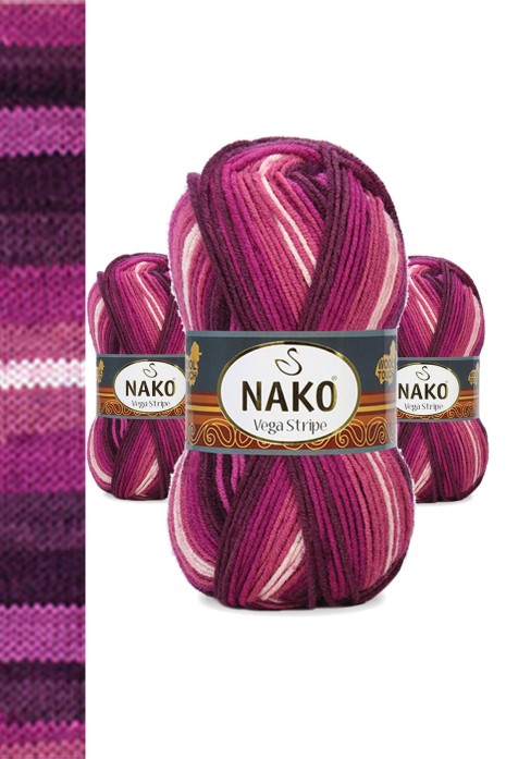3 Adet Vega Stripe Premium Akrilik El Örgü İpi Yünü No: 82413