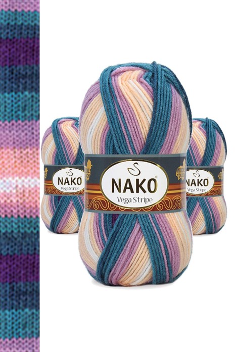 3 Adet Vega Stripe Premium Akrilik El Örgü İpi Yünü No: 82416