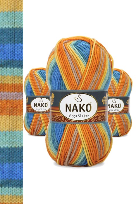 3 Adet Vega Stripe Premium Akrilik El Örgü İpi Yünü No: 82421