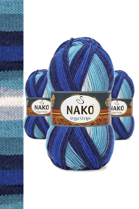 3 Adet Vega Stripe Premium Akrilik El Örgü İpi Yünü No: 82423