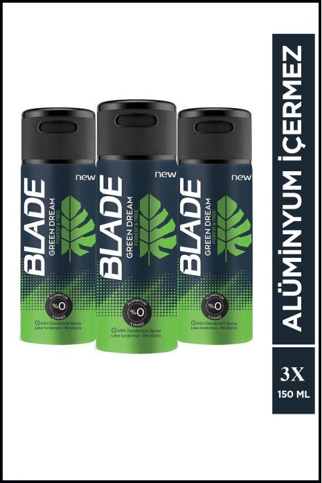 3 Adet Blade Green Dream Erkek Deodorant 150 Ml Hızlı Kurur, Leke Bırakmaz