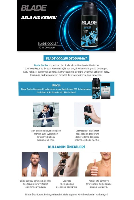 Blade Deep Chill Erkek Deodorant 150 Ml Hızlı Kurur, Leke Bırakmaz