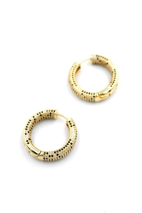 Zirkon Taşlı Halka Küpe - Altın