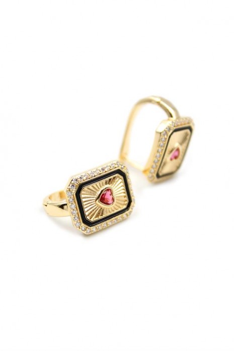 Kalp Taşlı Küpe - Pembe