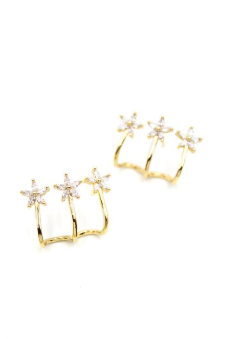Üçlü Çiçek Küpe - Altın