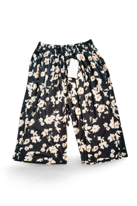 Dökümlü Desenli Yumuşak Viskon Kumaş Battal Beli Lastikli Kadın Jumbo Kapri Desen 1