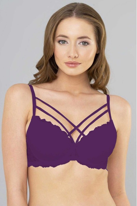 Çapraz İpli Dantelli Silikonlu Dolu Sütyen Mürdüm