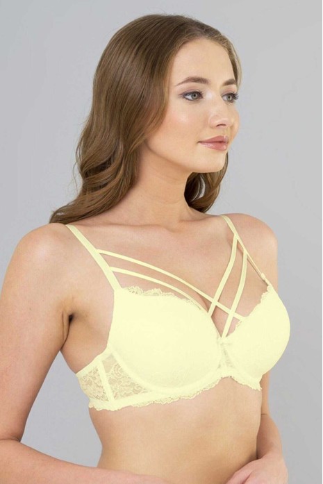 Çapraz İpli Dantelli Silikonlu Dolu Sütyen Ekru