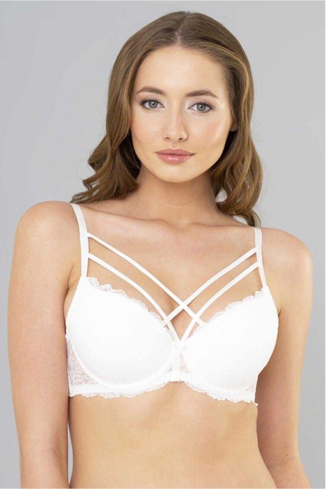 Çapraz İpli Dantelli Silikonlu Boş Sütyen Beyaz