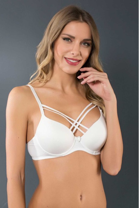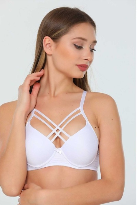 Çapraz İpli Silikonlu Boş Sütyen Beyaz