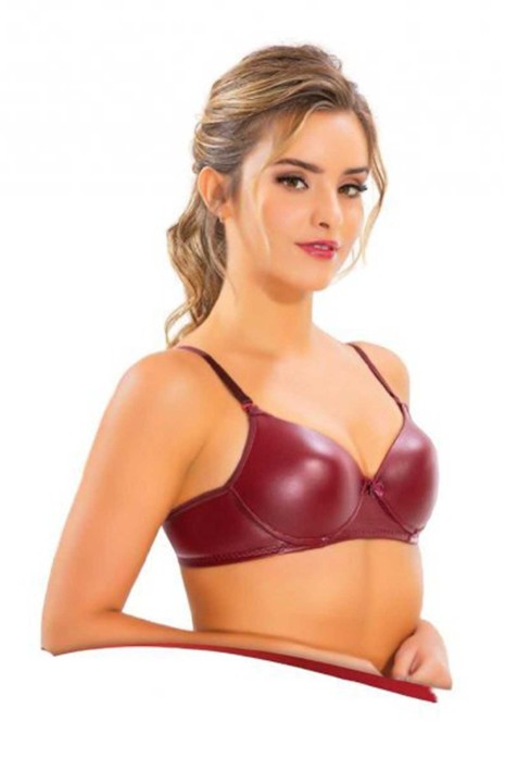 Balenli Destekli Silikonlu Deri İçi Dolu Sütyen Bordo