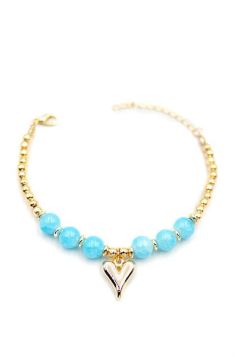 Boncuklu Kalp Bileklik - Mavi